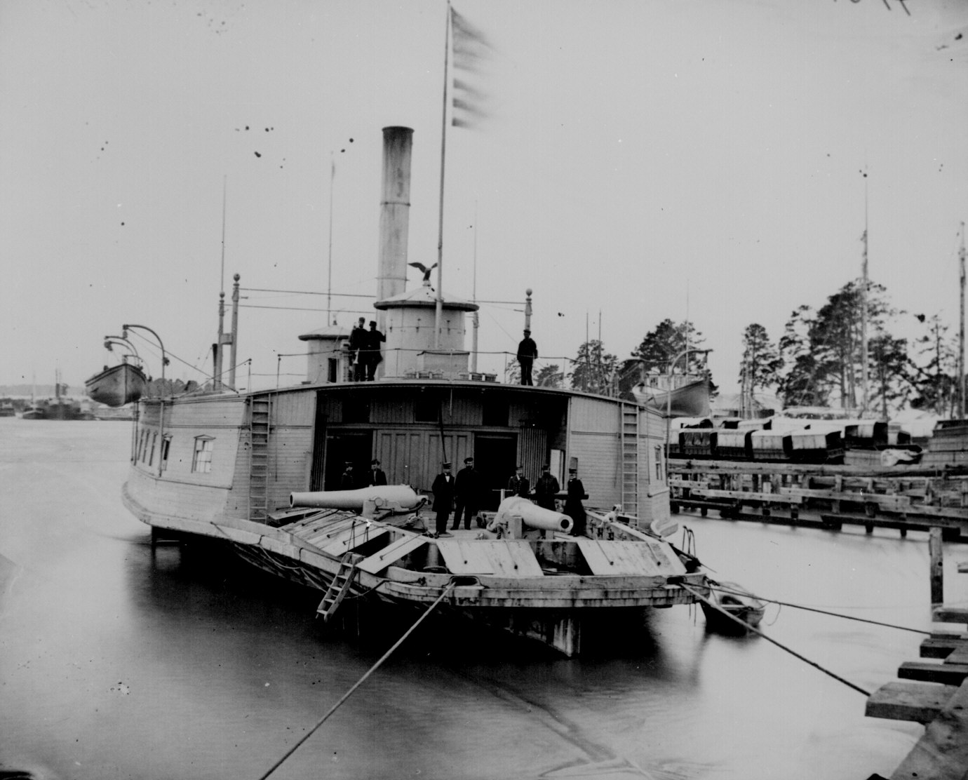 50. U.S.S. Commodore Perry, a ferryboat converted into a gunboat, Pamunkey River, Va., 1864. 111-B-411.
