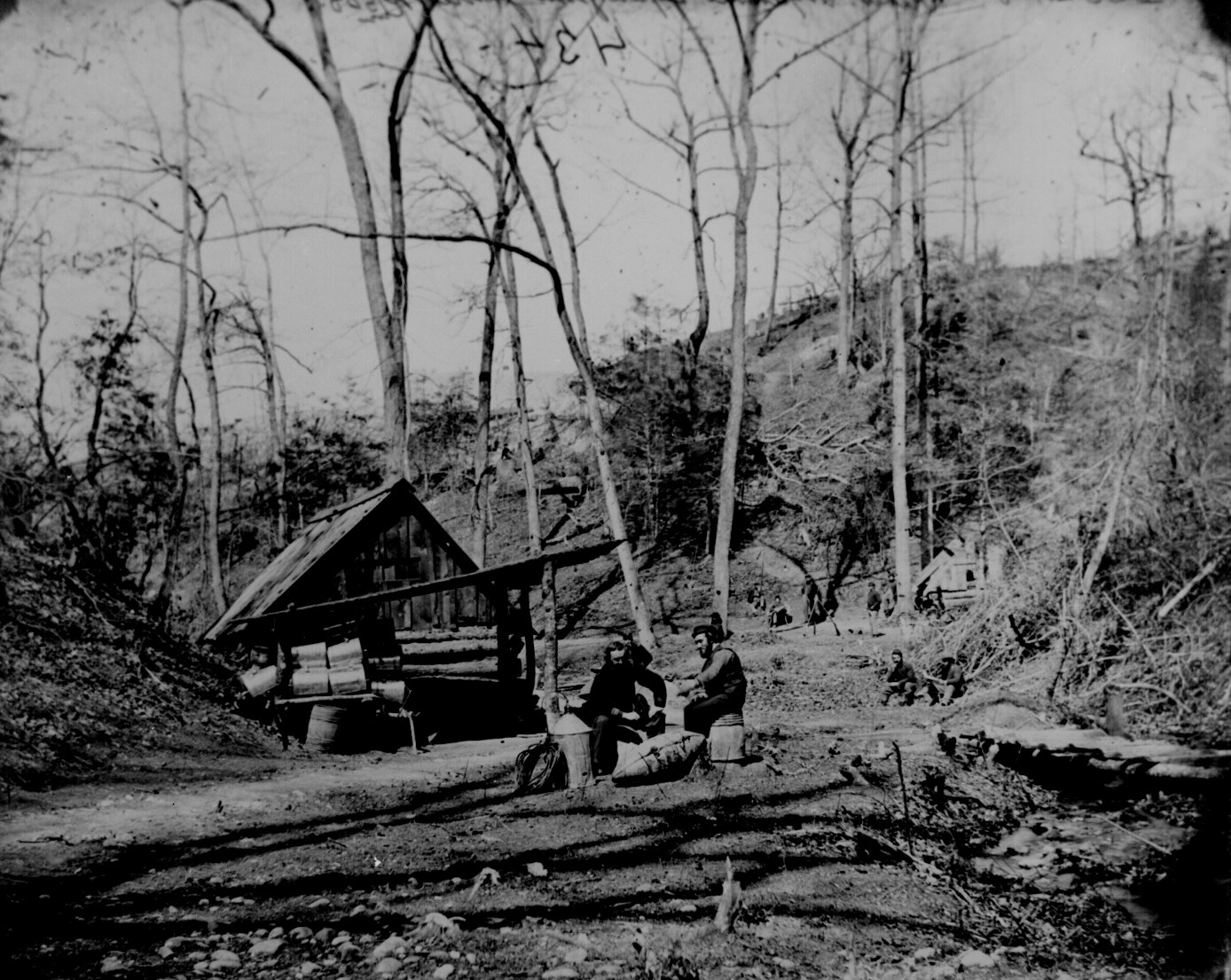 65. Two photographers having lunch in the Bull Run area before the second battle, 1862. 90-CM-42.