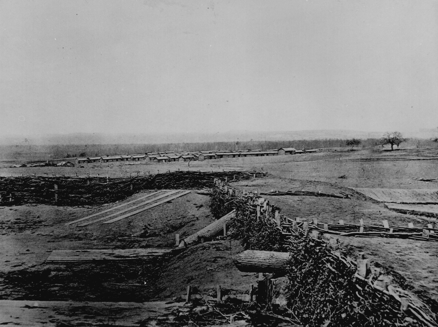 59. Confederate "Quaker" guns-logs mounted to deceive Union forces-in the fortifications at Centreville, Va., March 1862. Photographed by George N. Barnard and James F. Gibson. 165-SB-6.