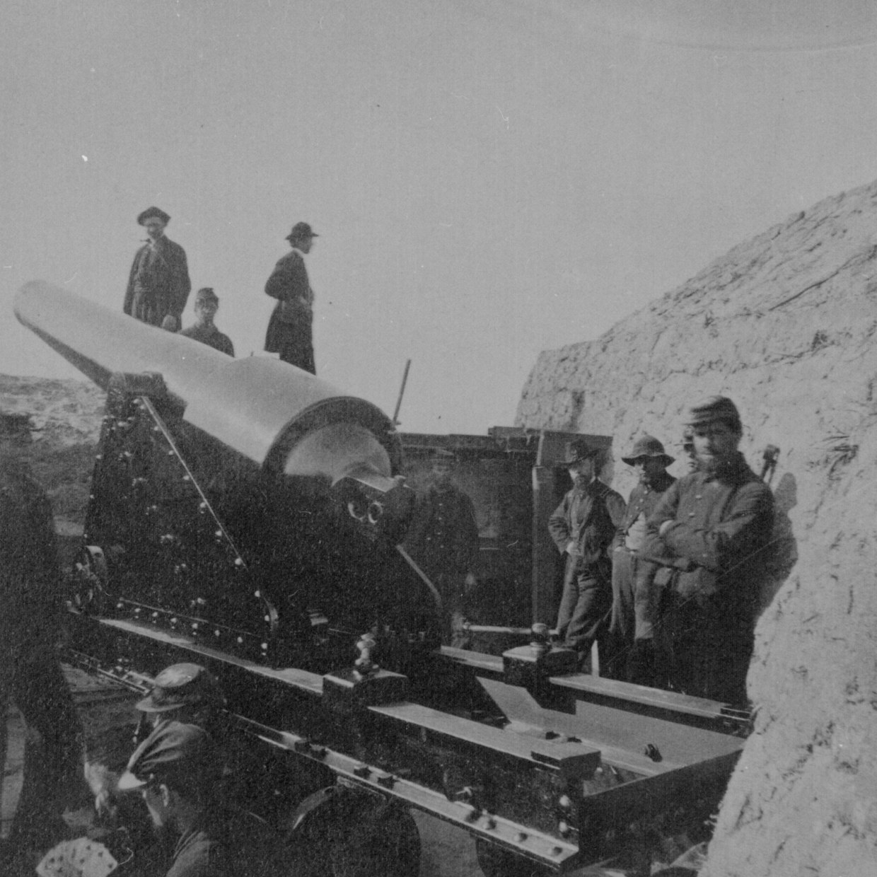 62. A 200-pound Parrott rifle in Fort Gregg on Morris Island, S.C., 1865. Photographed by Samuel A. Cooley. 165-S-128.