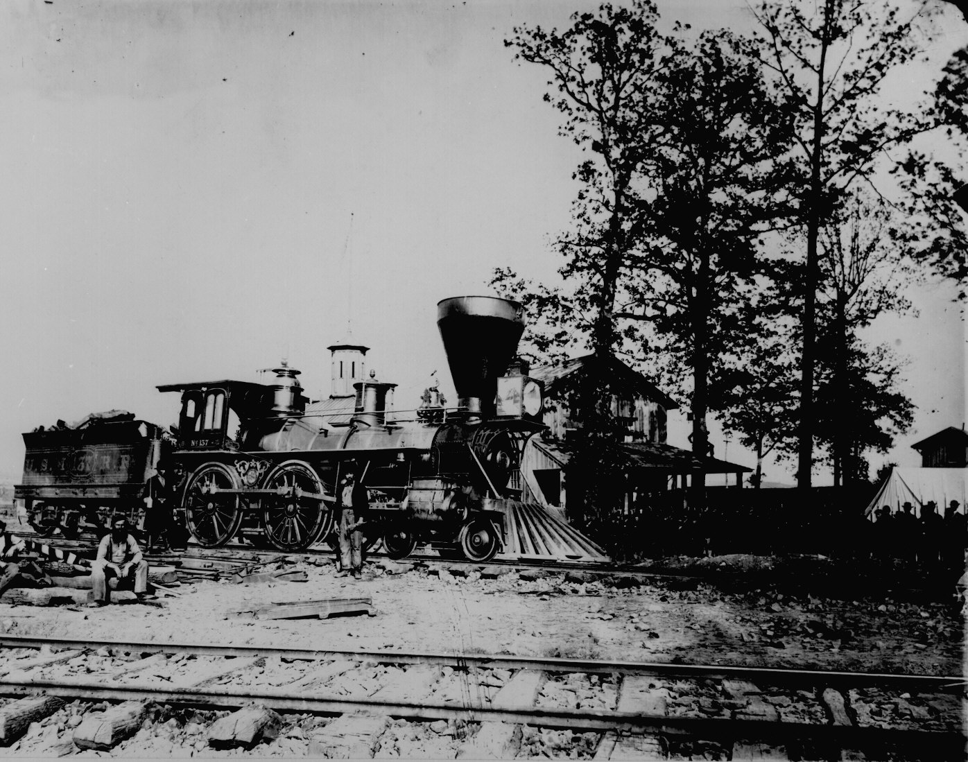 60. The 13-inch mortar "Dictator" mounted on a railroad flatcar before Petersburg, Va., October 1864. Photographed by David Knox. 165-SB-75.